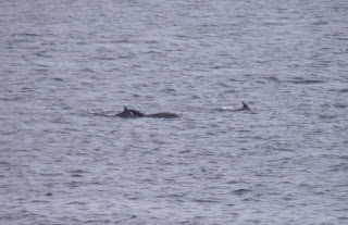 As seems to be the case with relatively calm morning watches when winds are unfavourable, a few token Bonxies & Common Scoters can be expected along with Manxie passage in the 'wrong' direction. Dolphins save the day yet again!